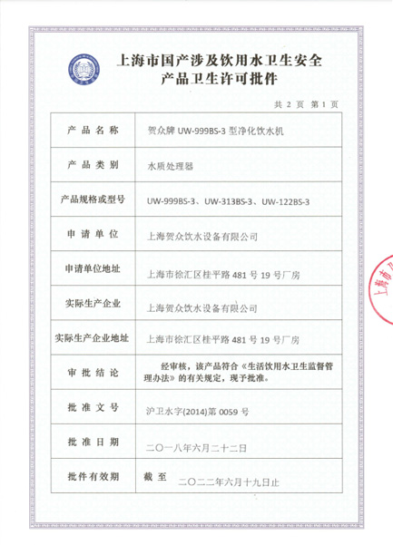 東莞市賀一飲水設備有限公司為賀眾牌飲水設備東莞授權總代理商,證號24019,負責上海賀眾飲水設備所產制的賀眾牌相關產品的銷售以及售后服務。